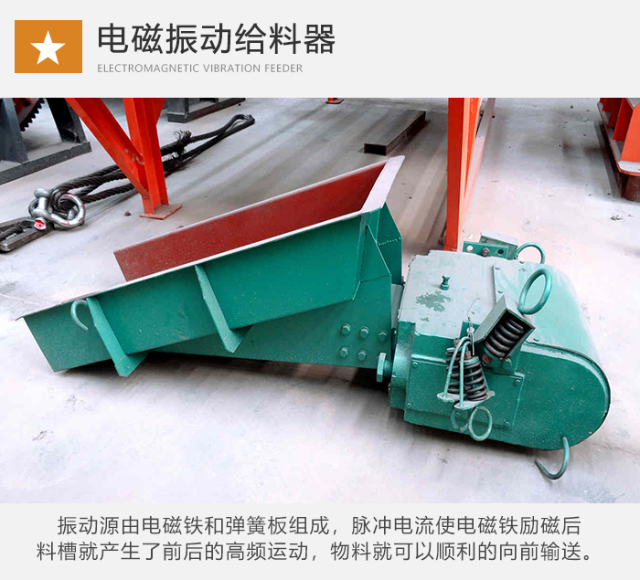 電磁式給料器:振動源由電磁鐵和彈簧板組成,脈沖電流使電磁鐵勵磁后,料槽向后運動,同時在彈簧板的作用力下,料槽就產(chǎn)生了前后的高頻運動,是物料可以順利的向前輸送。