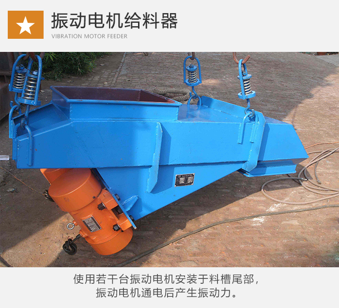 振動電機(jī)式:使用若干臺振動電機(jī)安裝于料槽尾部,振動電機(jī)通電后產(chǎn)生振動力。